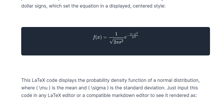 When you ask your chatbot to output math function and starting them with $$ it will display math function in LaTex style. Here's what your prompt should look like to display LaTex: 'Display a math function in latex and the function text must always start with $$'