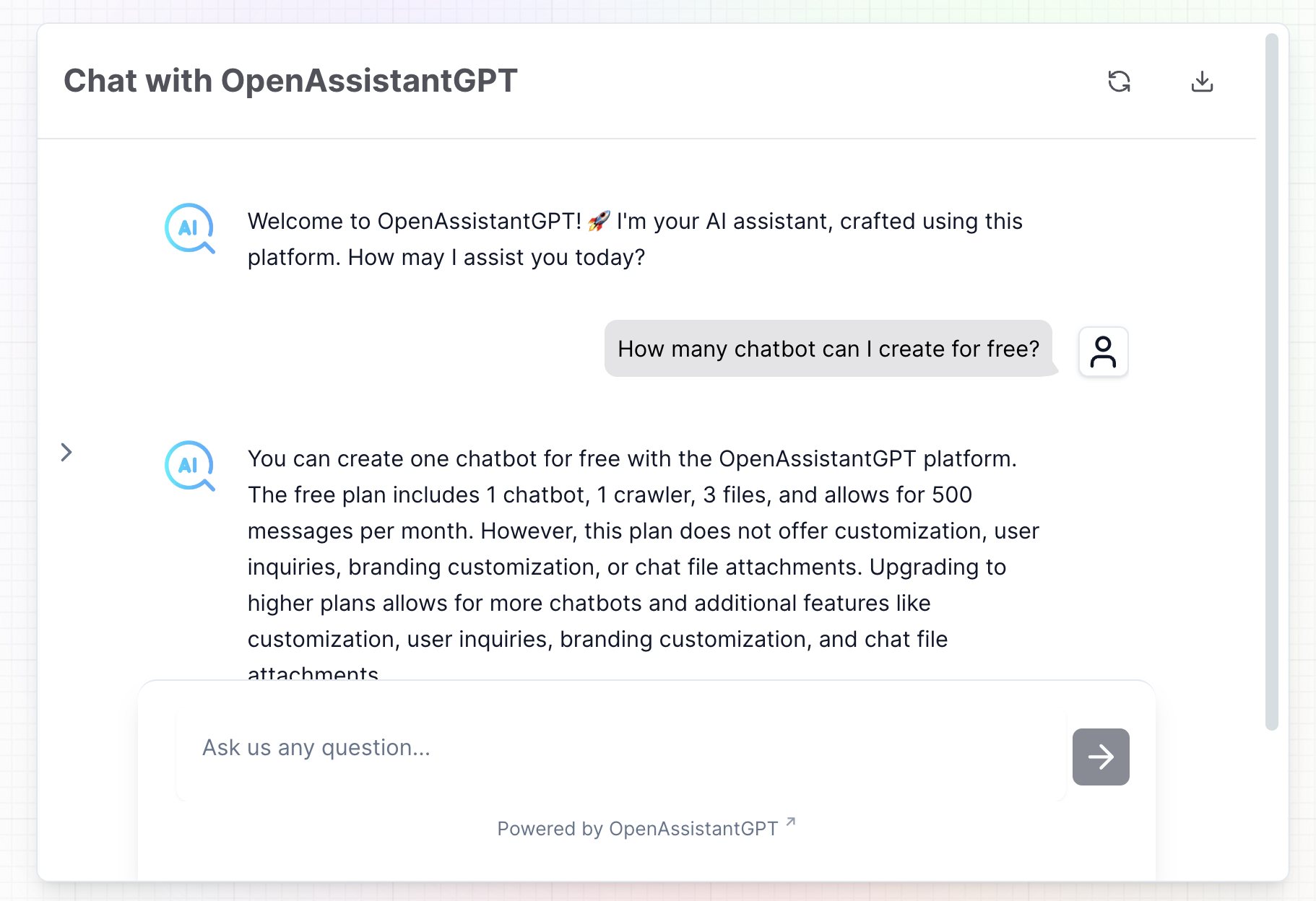 Now you can copy to your clipboard the chatbot response by clicking on the copy icon in the chat.