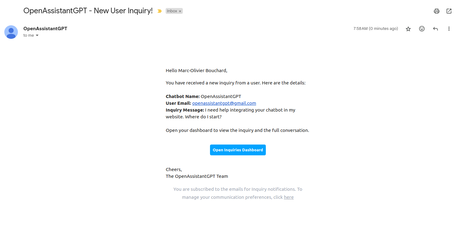 We now have email notifications! You'll receive an email when you receive a new user inquiry.
