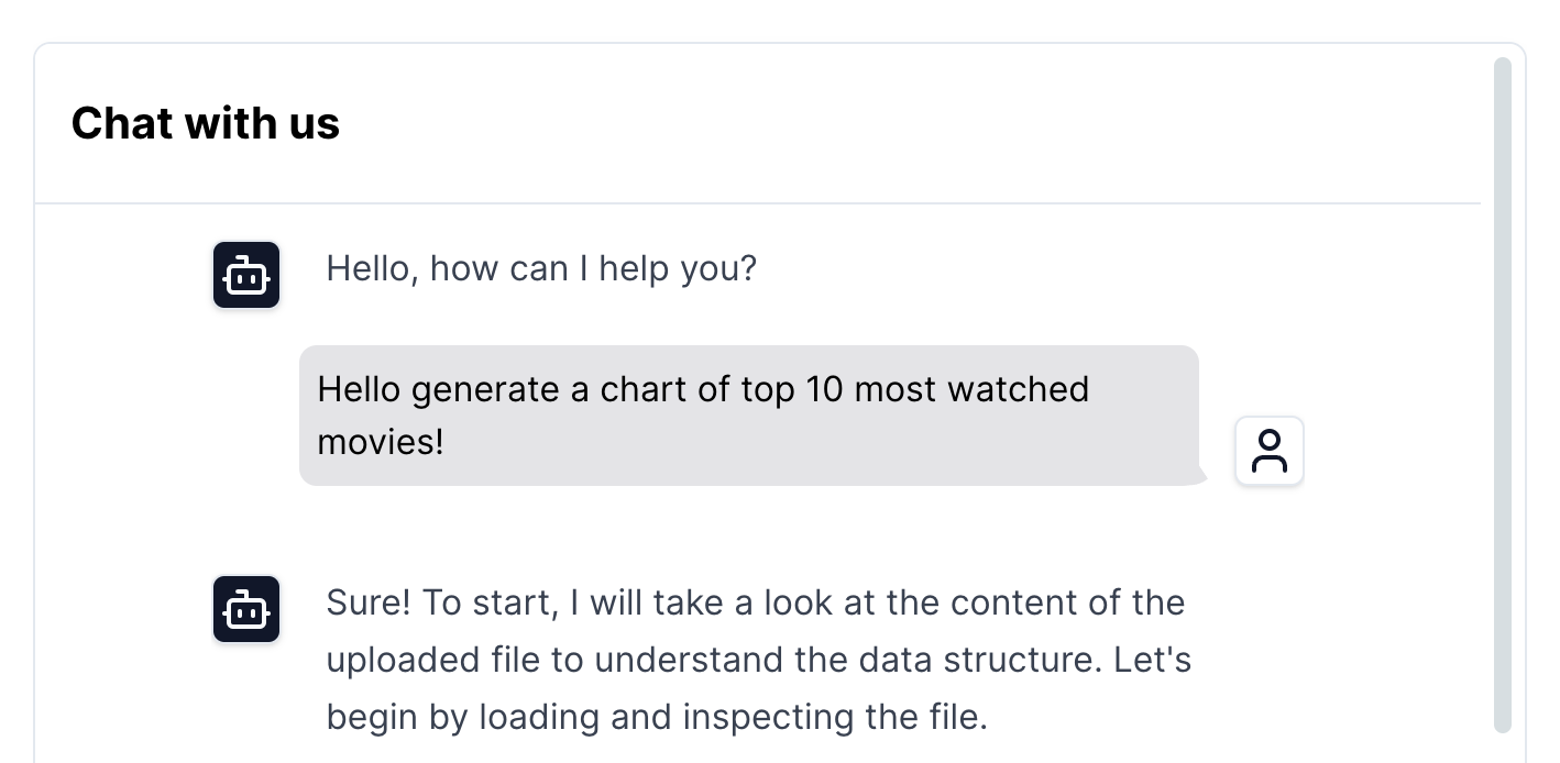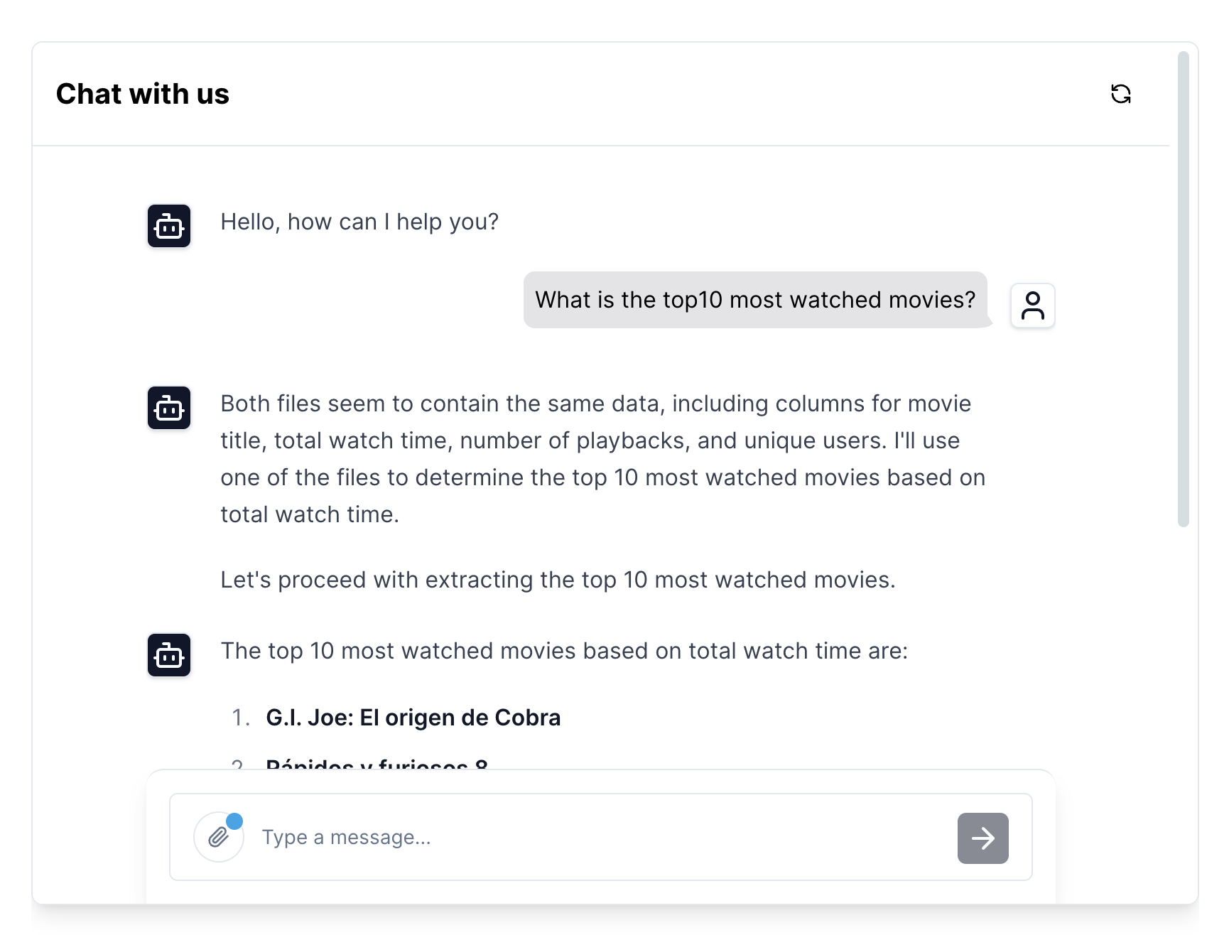 User in the chat can now upload files, images and more to the chatbot. The chatbot will then analyse the file and provide a response. It uses the "code_execution" function in OpenAI